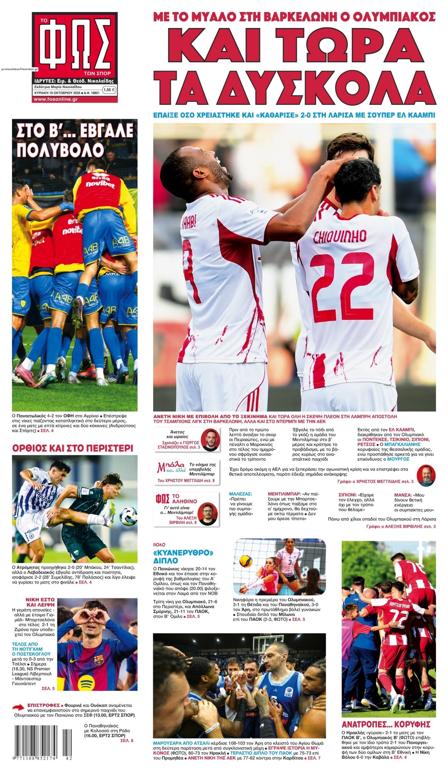 Διαβάστε τα πρωτοσέλιδα από τις αθλητικές εφημερίδες, σήμερα 19/10/2025.